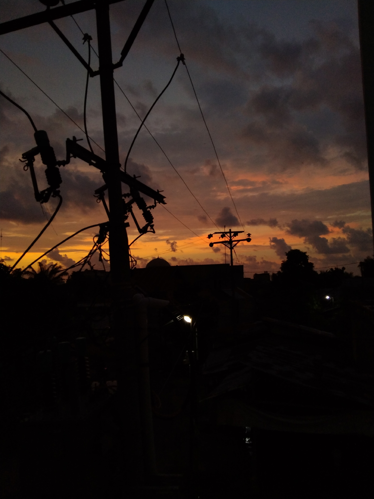 The image captures a serene sunset or dusk scene over what appears to be an urban or semi-urban area in Bireuenmeunasahdayah, Indonesia. The sky is a prominent feature, displaying a striking blend of…read more