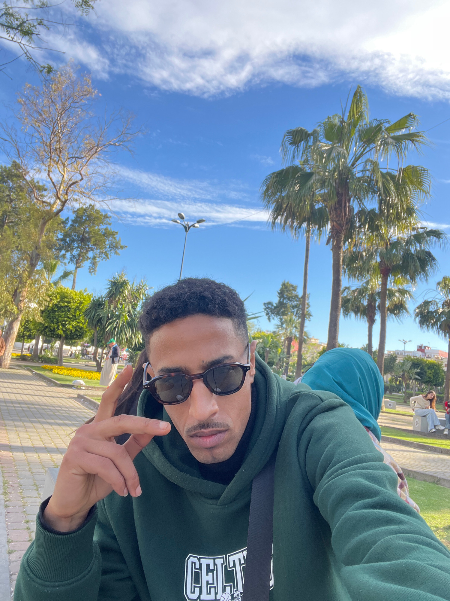 A medium shot captures a person wearing sunglasses and a dark green hooded sweatshirt in an outdoor environment. The subject extends a hand in a gesture. Above them is a blue sky with scattered cloudsβ¦read more