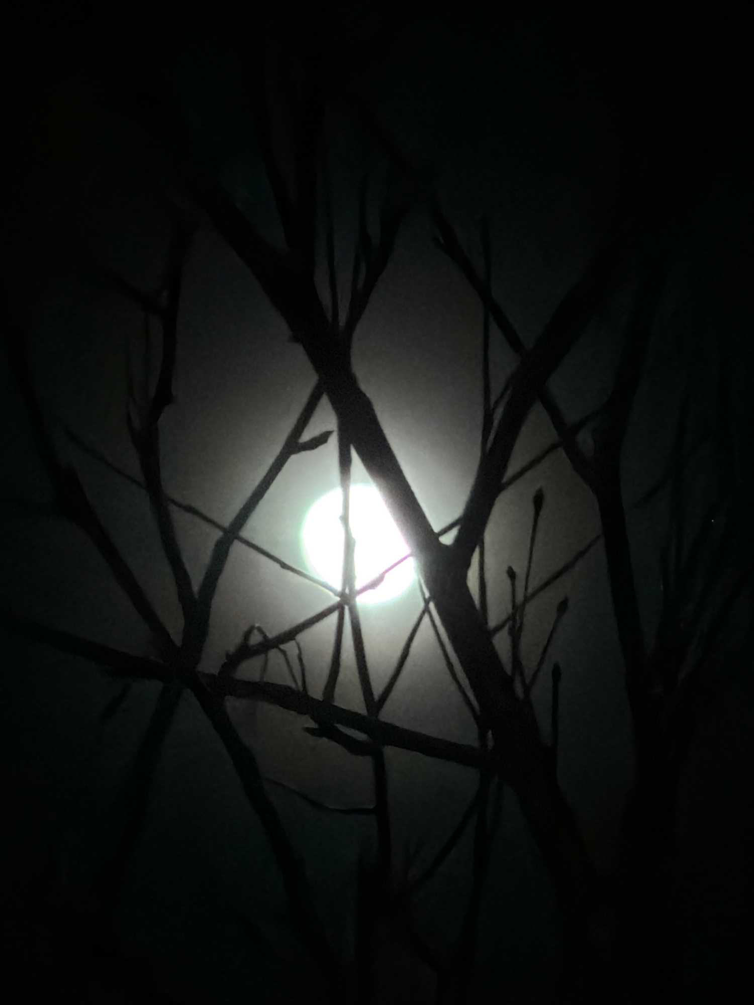 A low-angle, nighttime view, possibly taken in Dubovaya, Russia, focuses on the moon obscured by tree branches. The dark silhouettes of the branches contrast sharply with the bright, diffused light of…read more