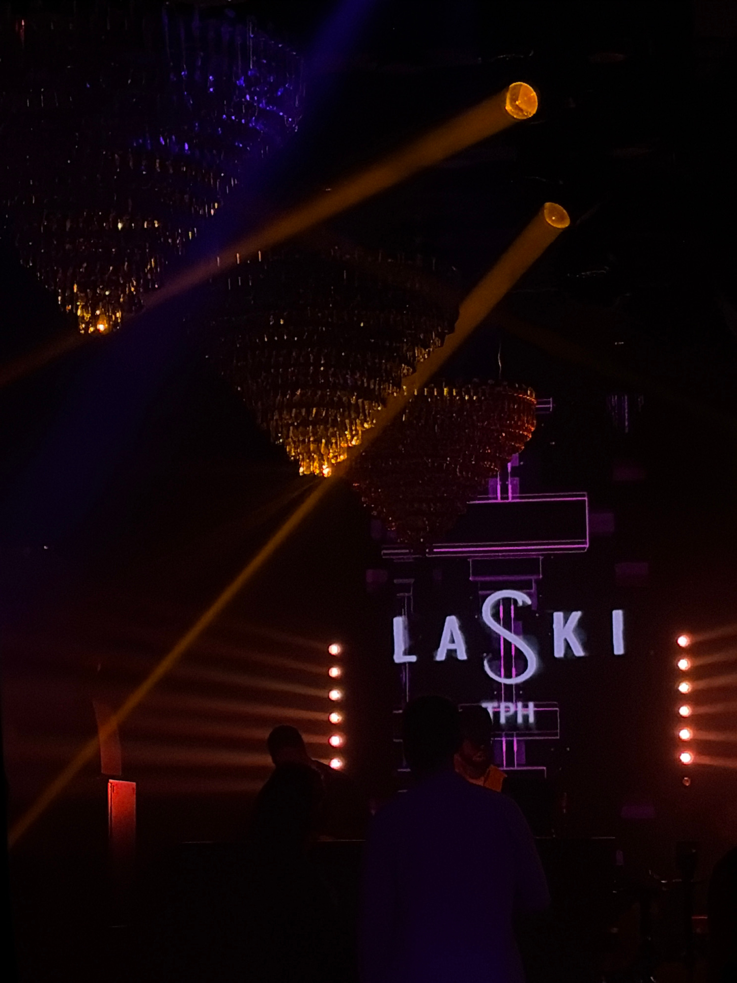 The image shows a stage setup at what appears to be a performance venue in Moscow, Russia. The text "LASKI TPH" is visible, possibly related to the event or performers. There are stage lights casting…read more