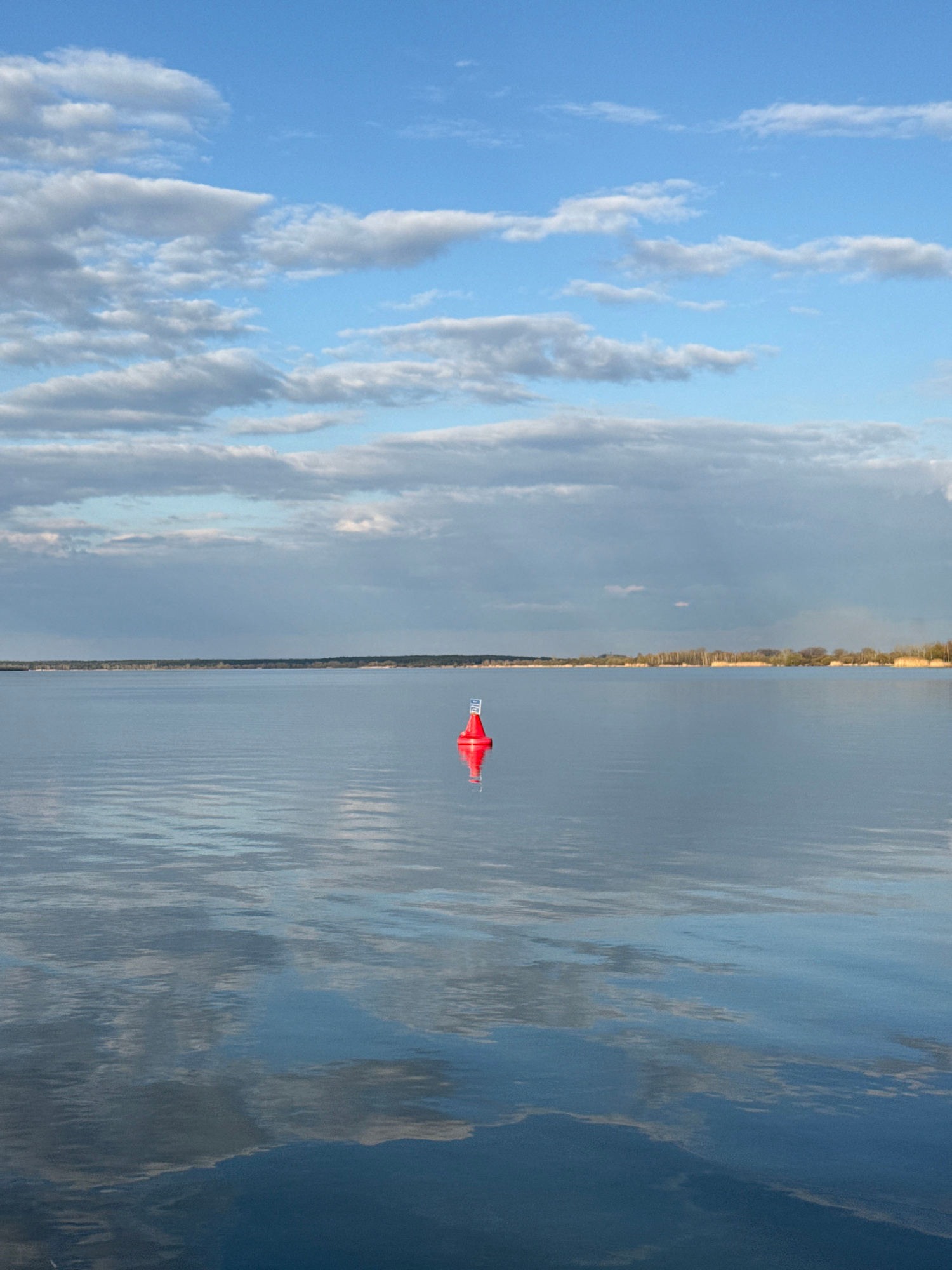 The image, when correctly oriented, presents a tranquil landscape featuring a large body of water beneath a clear sky with scattered clouds, set in Kurchatov, Russia, likely depicting the Kurchatov Re…read more