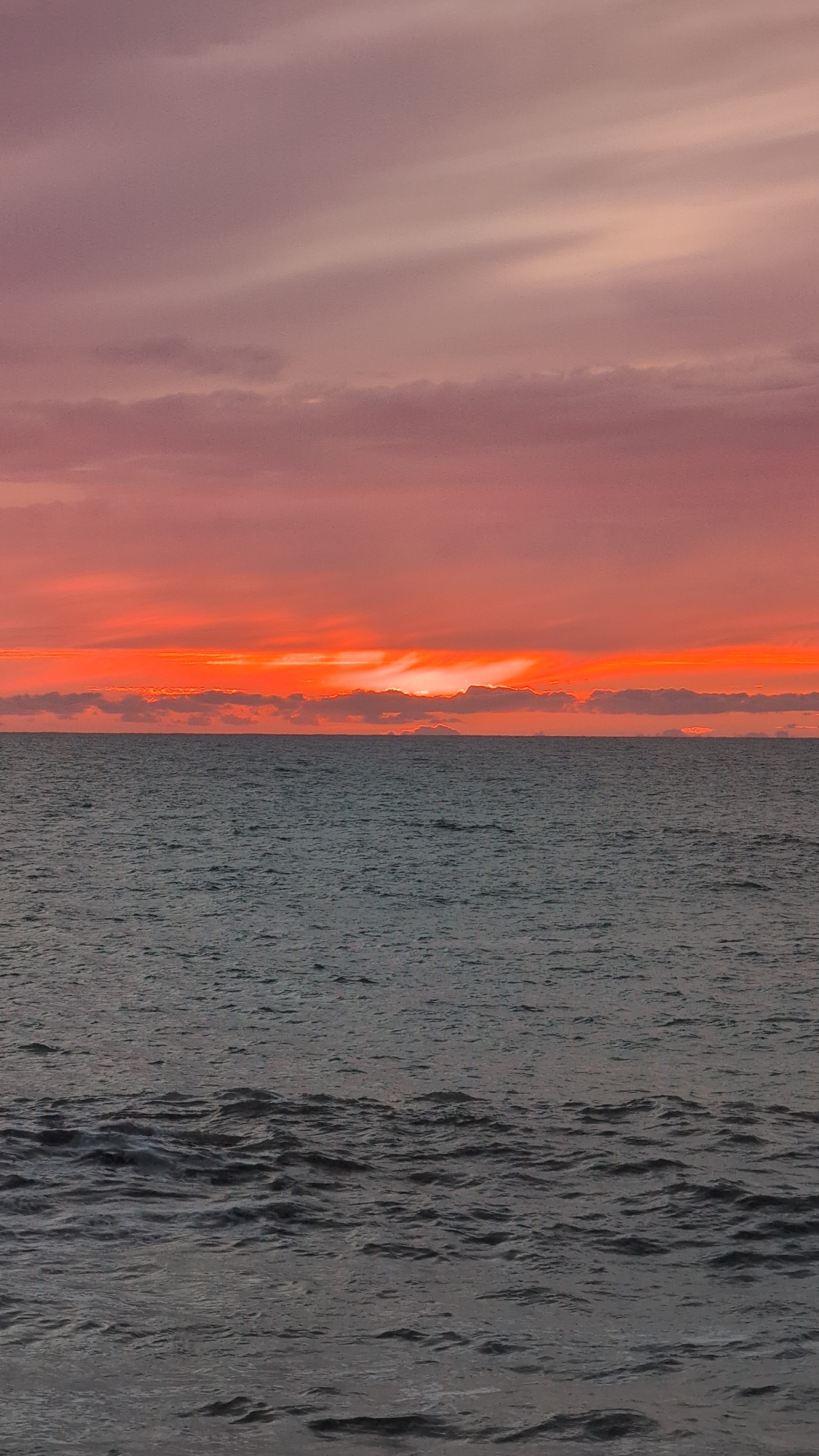 The image depicts a sunset scene, likely in Kobuleti, Georgia, given the prompt's request. On the left, the sky is a gradient of soft pinks and oranges, indicative of the sun setting. A band of intens…read more