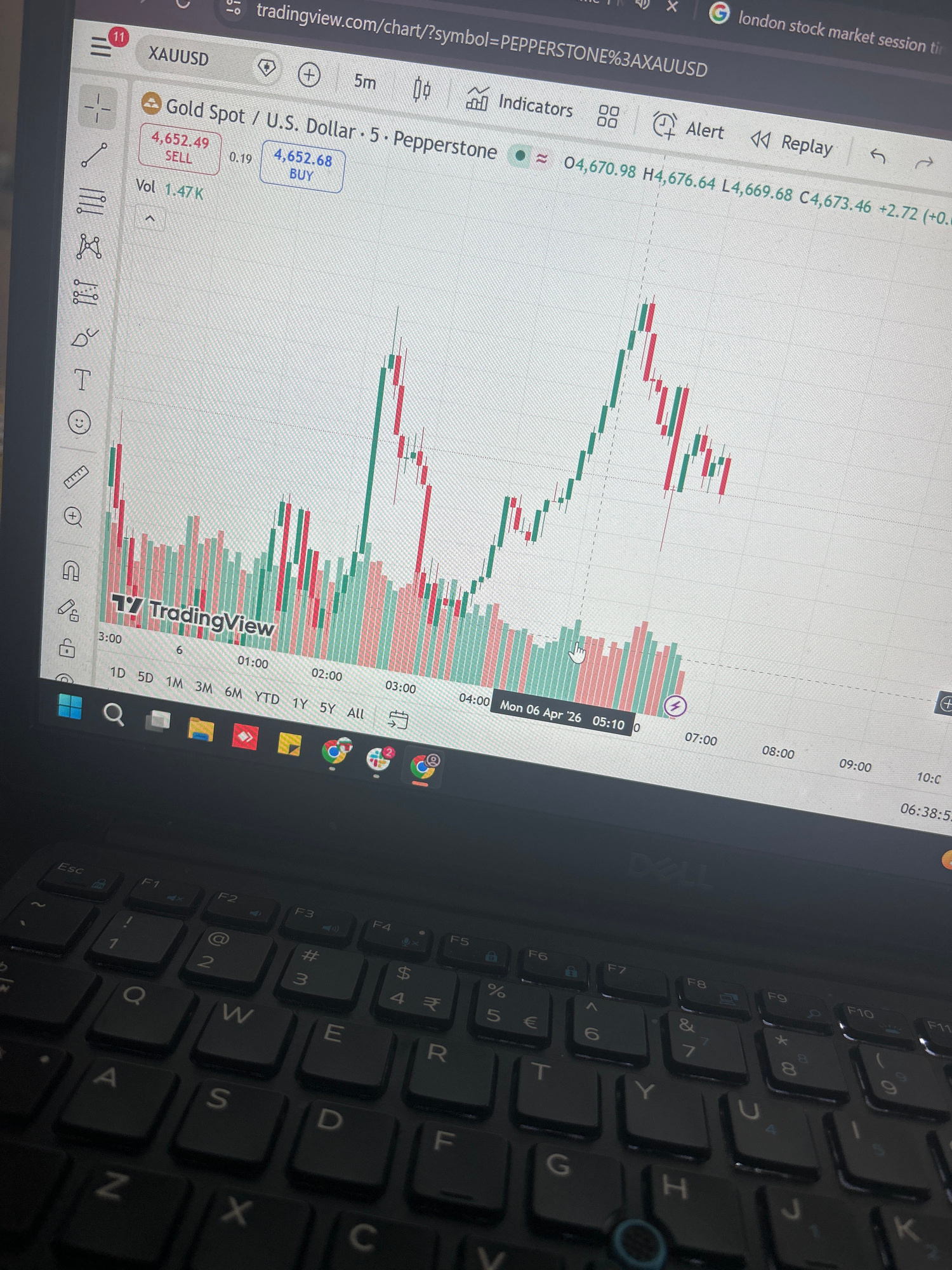 The image depicts a computer screen displaying a gold spot price chart on TradingView. The chart shows candlestick data for XAUUSD (Gold Spot / U.S. Dollar) with a 5-minute interval, sourced from Pepp…read more