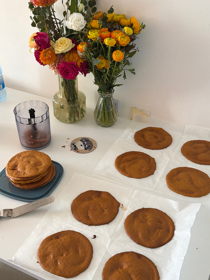 This indoor scene, located in Tel-Aviv, Israel, depicts a white countertop against a plain white wall, set up for a baking or dessert preparation activity. In the upper left, a partially visible clear…read more