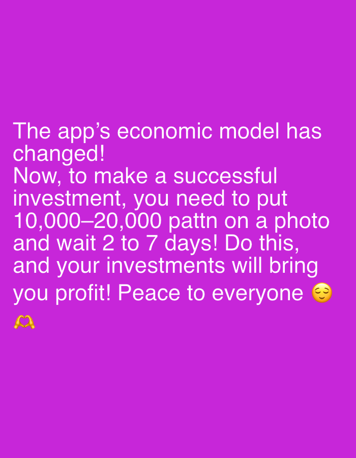 The image displays white text on a solid fuchsia background. The text, presented in a sans-serif font, reads: "The app's economic model has changed! Now, to make a successful investment, you need to p…read more