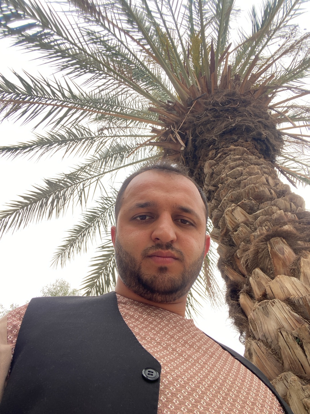 The image displays a male individual, appearing to be in his 20s or 30s, located outdoors in Kandahar, Afghanistan. He has short dark hair, a full beard, and is looking directly at the camera with a n…read more