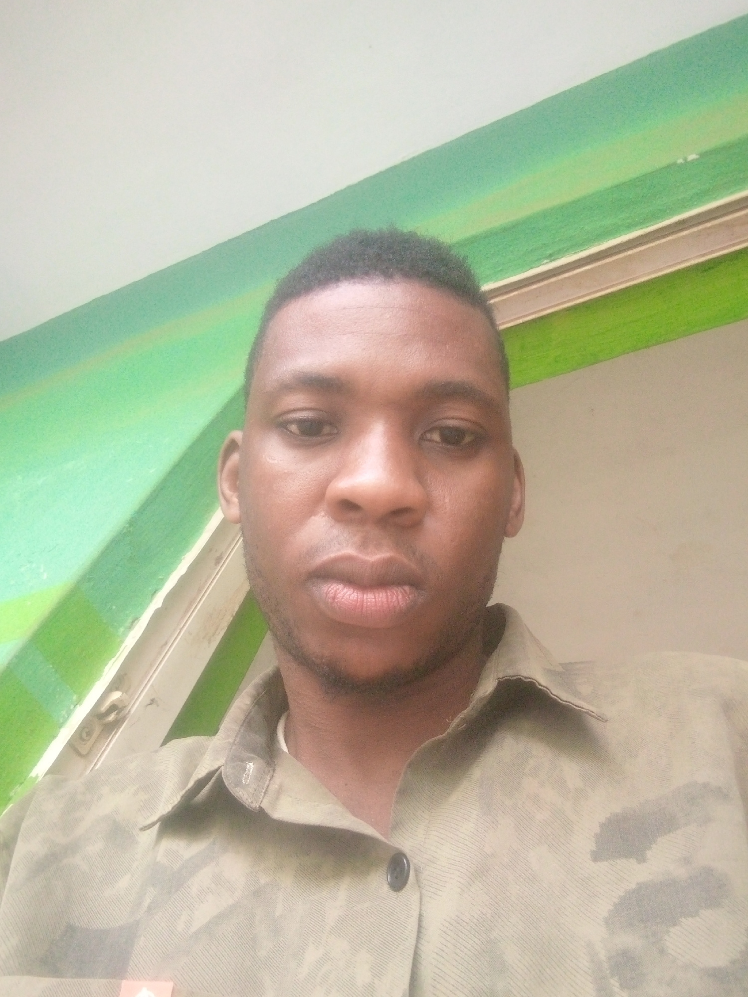 The image is a medium close-up shot of a man with short, dark hair, brown eyes, and dark skin. He is wearing a button-down shirt with a camouflage or textured pattern. The background is a wall painted…read more