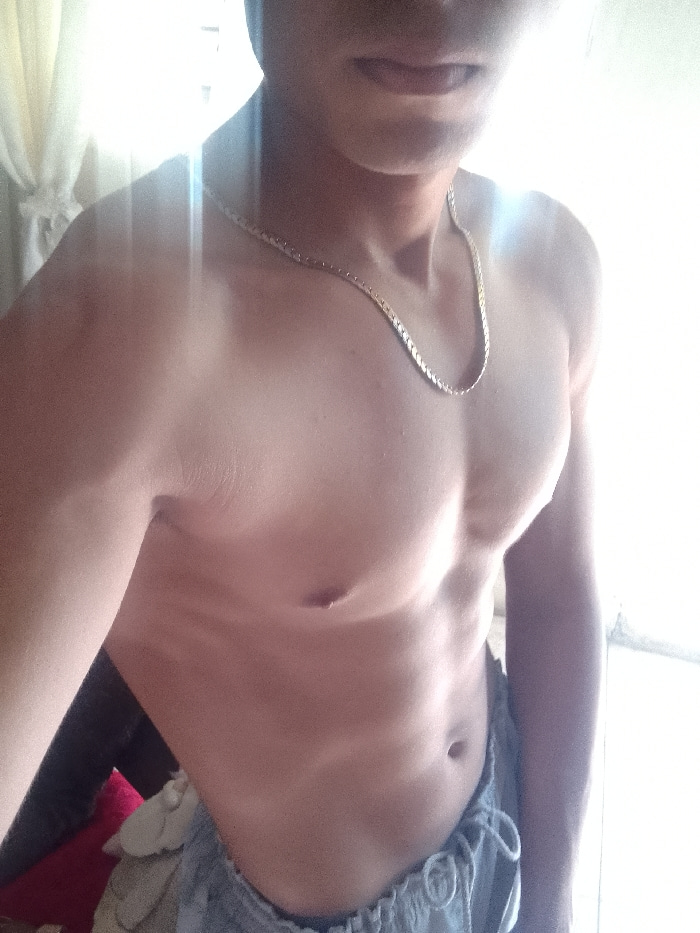 A shirtless man with a gold chain is seen from the chest up. His skin is fair, and he appears to be in an indoor setting with a window nearby. The man has a visible muscular physique and is wearing wh…read more