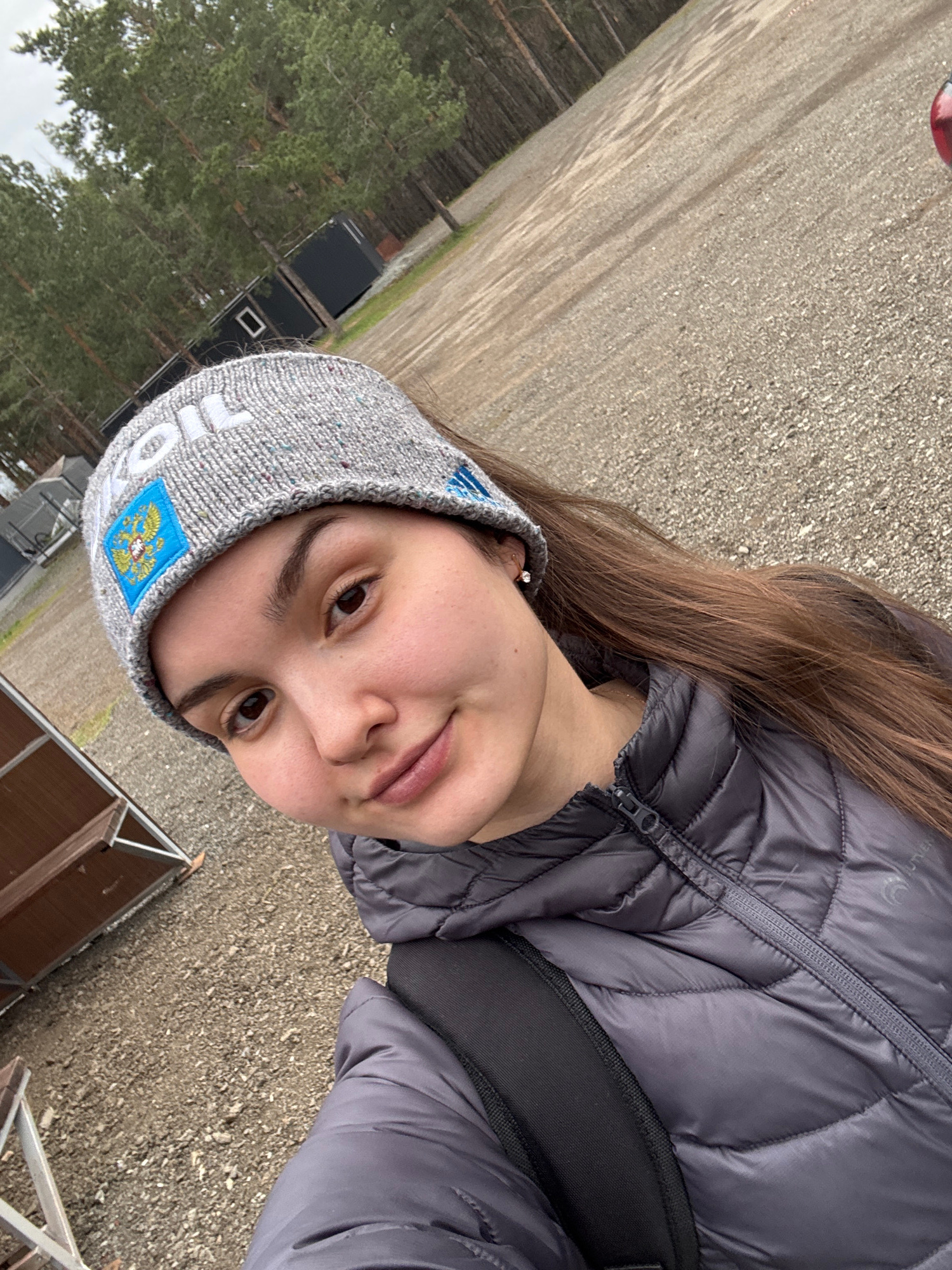 A young woman, likely in her late teens or early twenties, takes a close-up selfie in an outdoor setting in Orenburg, Russia. She is oriented sideways in the image, looking directly at the camera with…read more