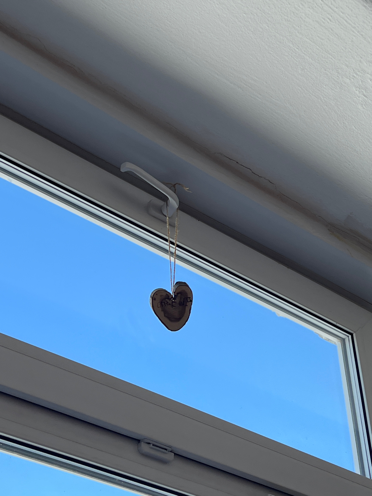 The image depicts an interior scene, likely within a building in Berezniki, Russia, as indicated by the inscription "Березники" on a small, heart-shaped wooden decoration. This decoration hangs from t…read more