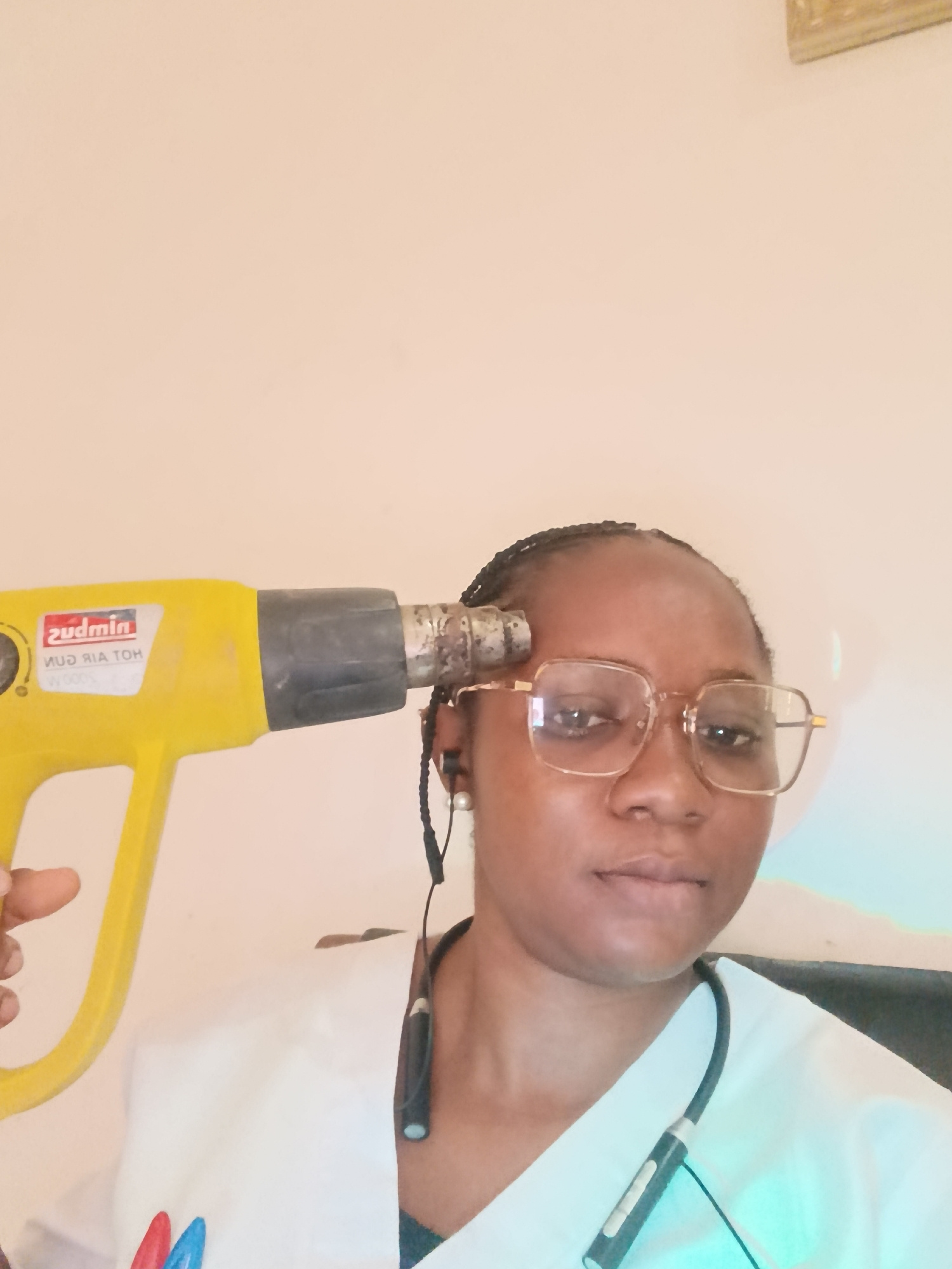 The image features a close-up portrait of a young Black woman in an indoor setting, likely in Gwarinpa, Nigeria. She is looking directly at the viewer with a neutral to slightly serious expression. Sh…read more