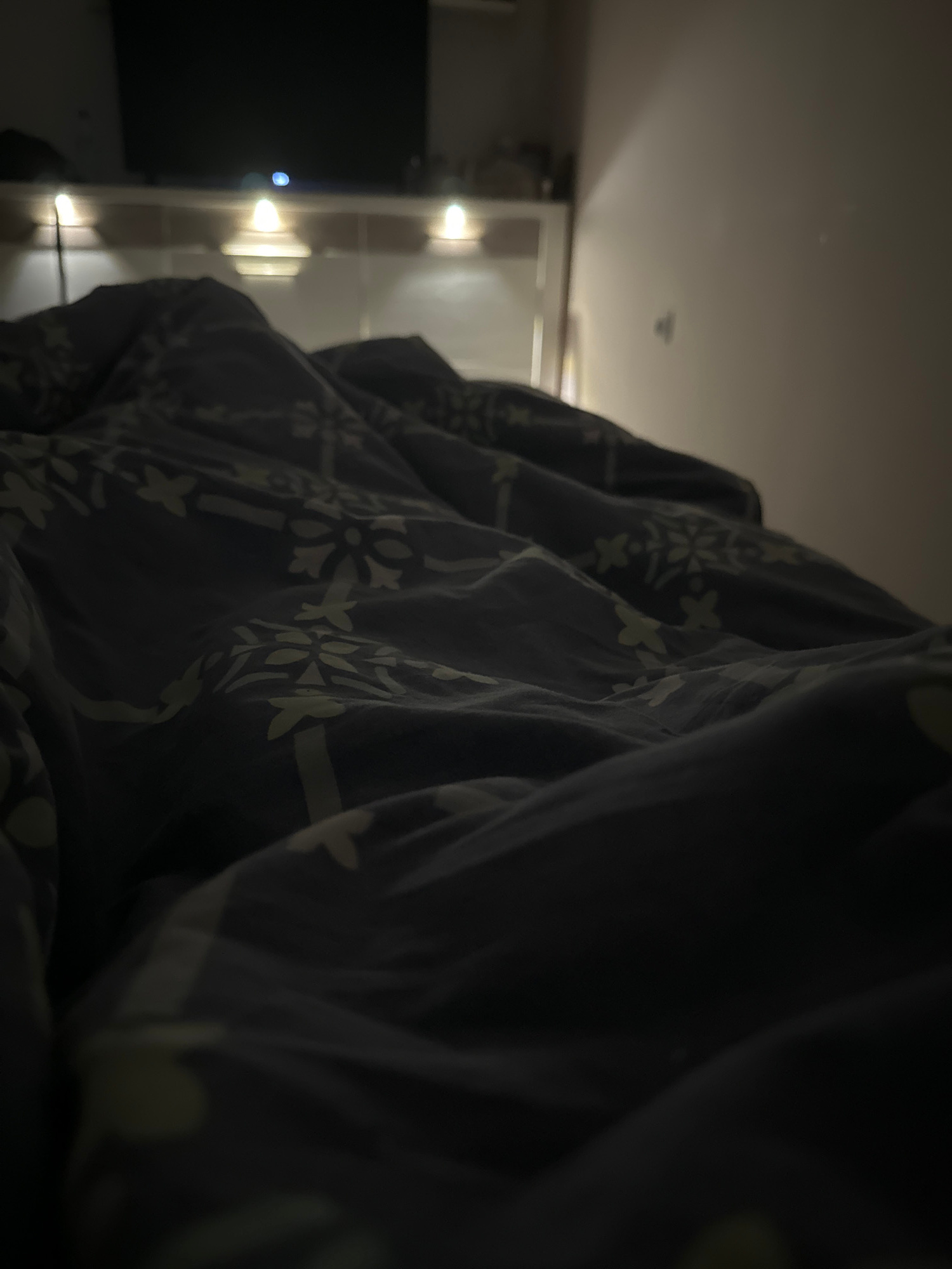 The image shows a close-up view of a patterned, likely floral, textile, possibly a bedspread or curtain. The fabric is draped and folded, creating depth and shadows. The background is out of focus, bu…read more