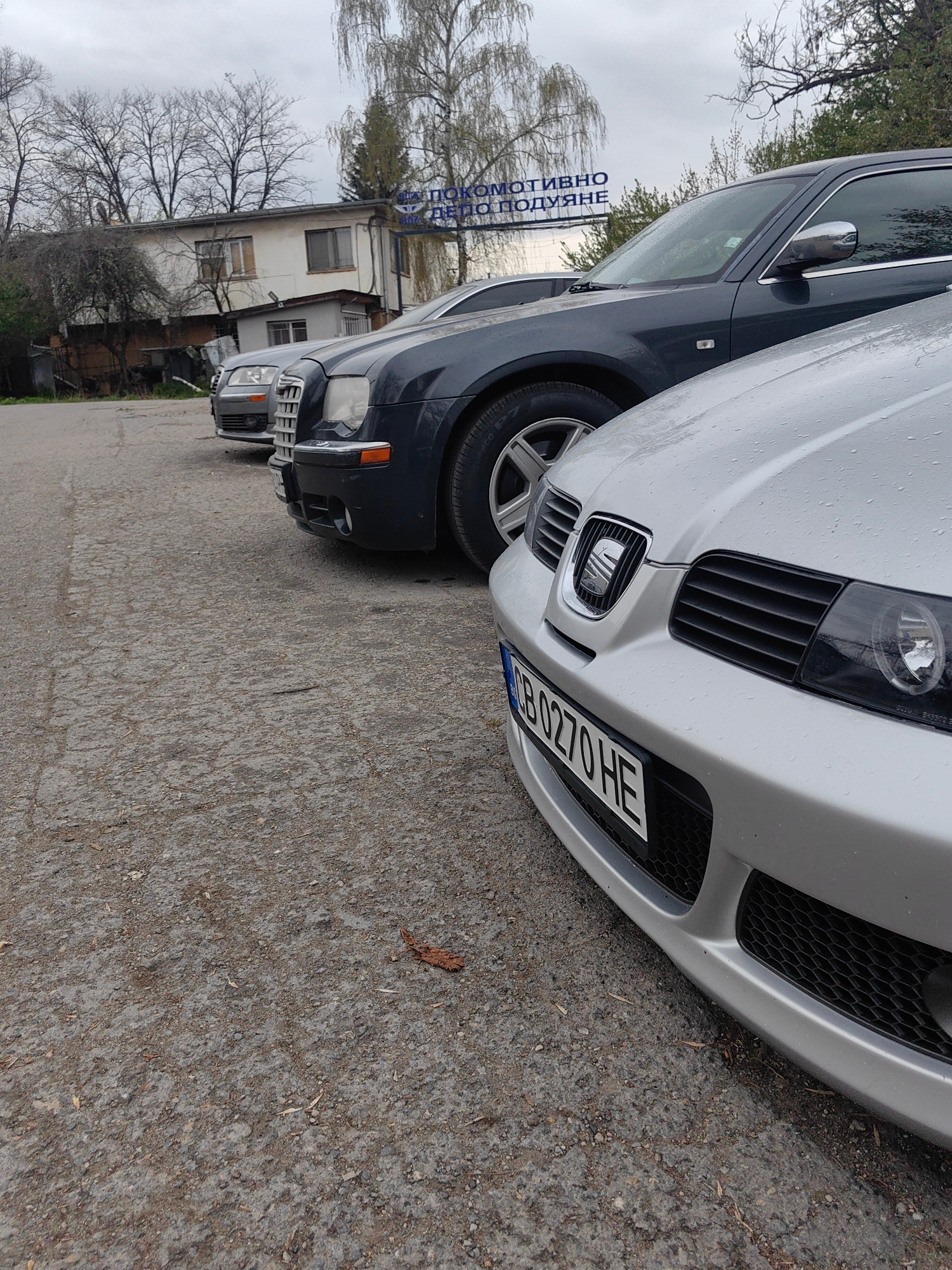 The image shows three cars parked in a line on a cloudy day in what appears to be a lot in Sofia, Bulgaria. In the foreground is the front of a silver car, a Seat Leon based on the registration plate.…read more