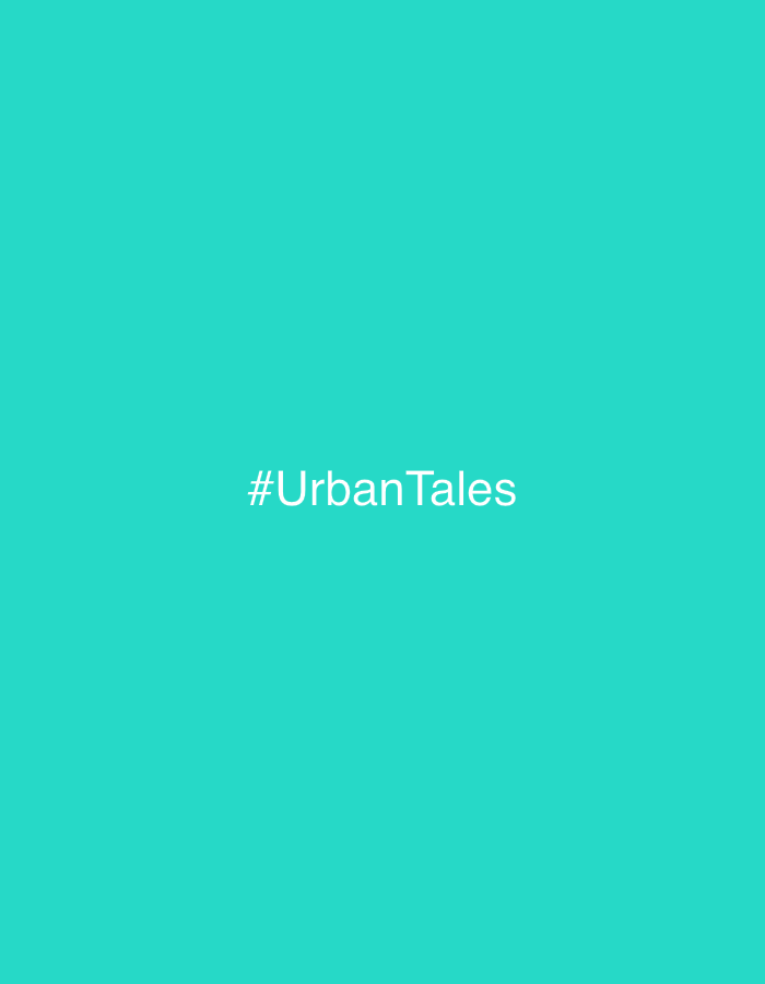 The image is a solid turquoise background with the white text "#UrbanTales" centered vertically and horizontally. There is no further context, people, subjects, objects, actions, interactions, or envi…read more