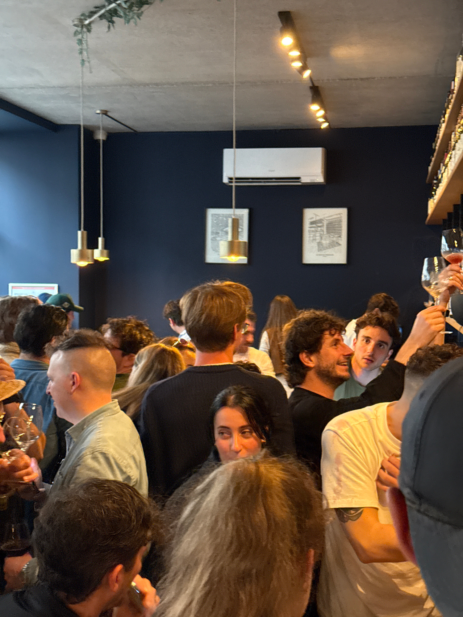 A photograph depicts a gathering of people, apparently indoors, in what appears to be a restaurant or bar setting. The view is partially obstructed due to the density of the crowd. A mix of men and wo…read more