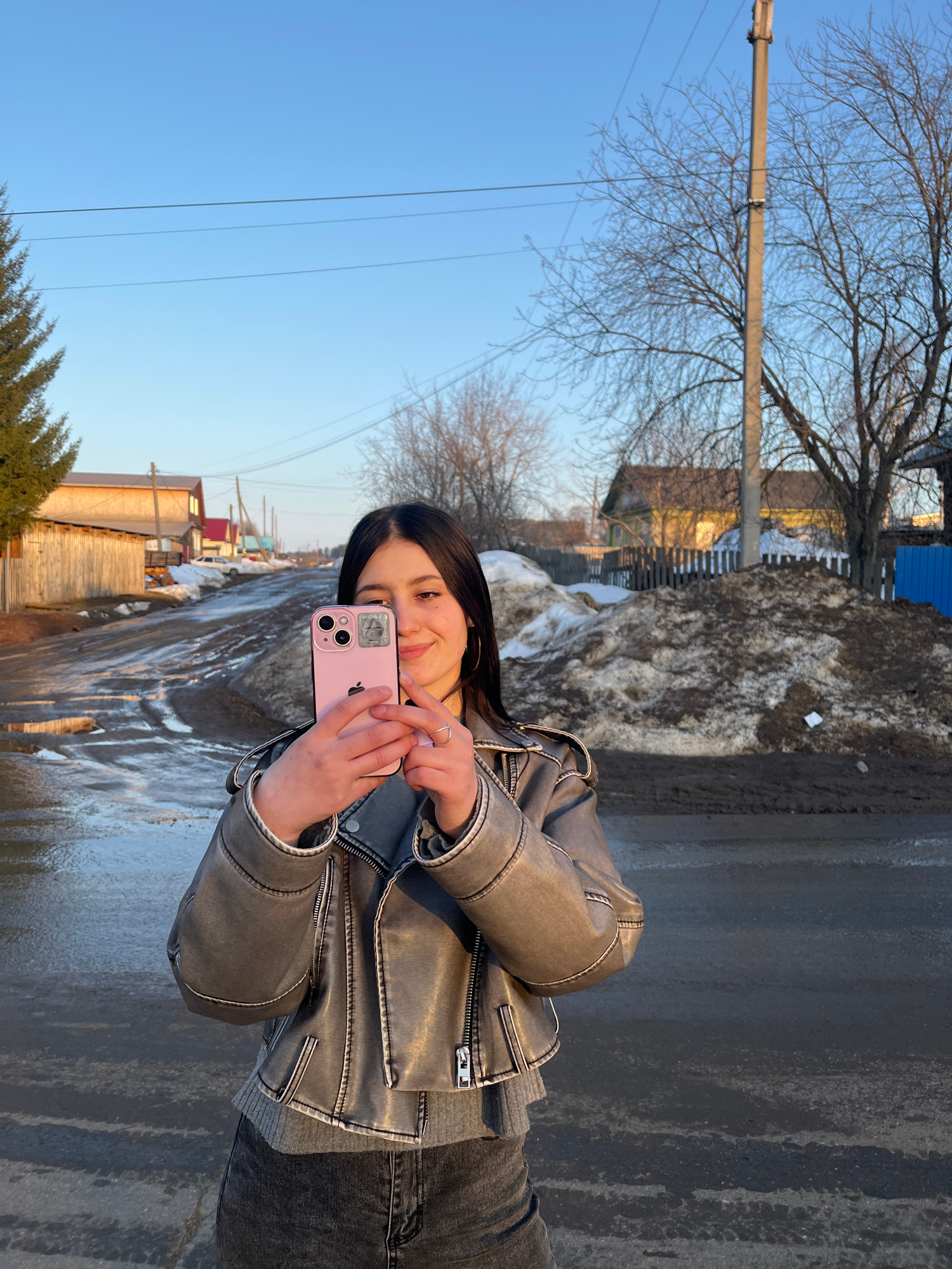 A young female, appearing to be in her late teens or early twenties, stands centered slightly to the right of the frame on a muddy dirt road in the city of Фоки, Russia. She has long dark hair and is…read more
