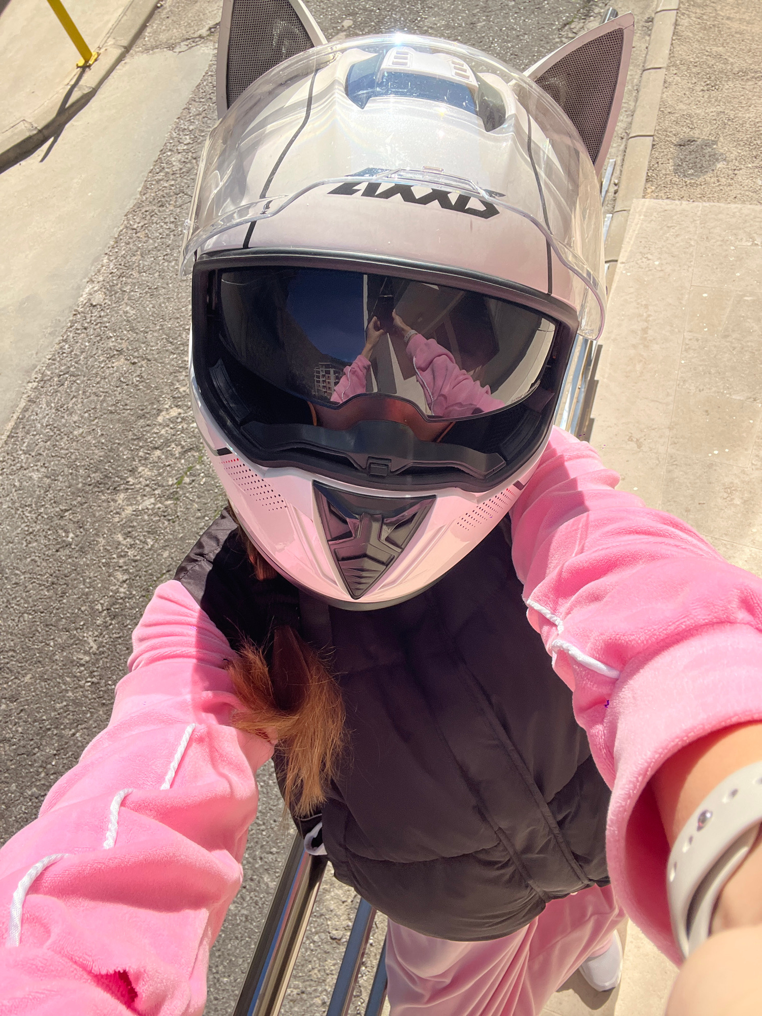 A top-down, medium shot depicts a person seated outdoors, likely in Rafailovići, Montenegro, though specific location details are not directly visible in the image. The individual wears a light pink v…read more