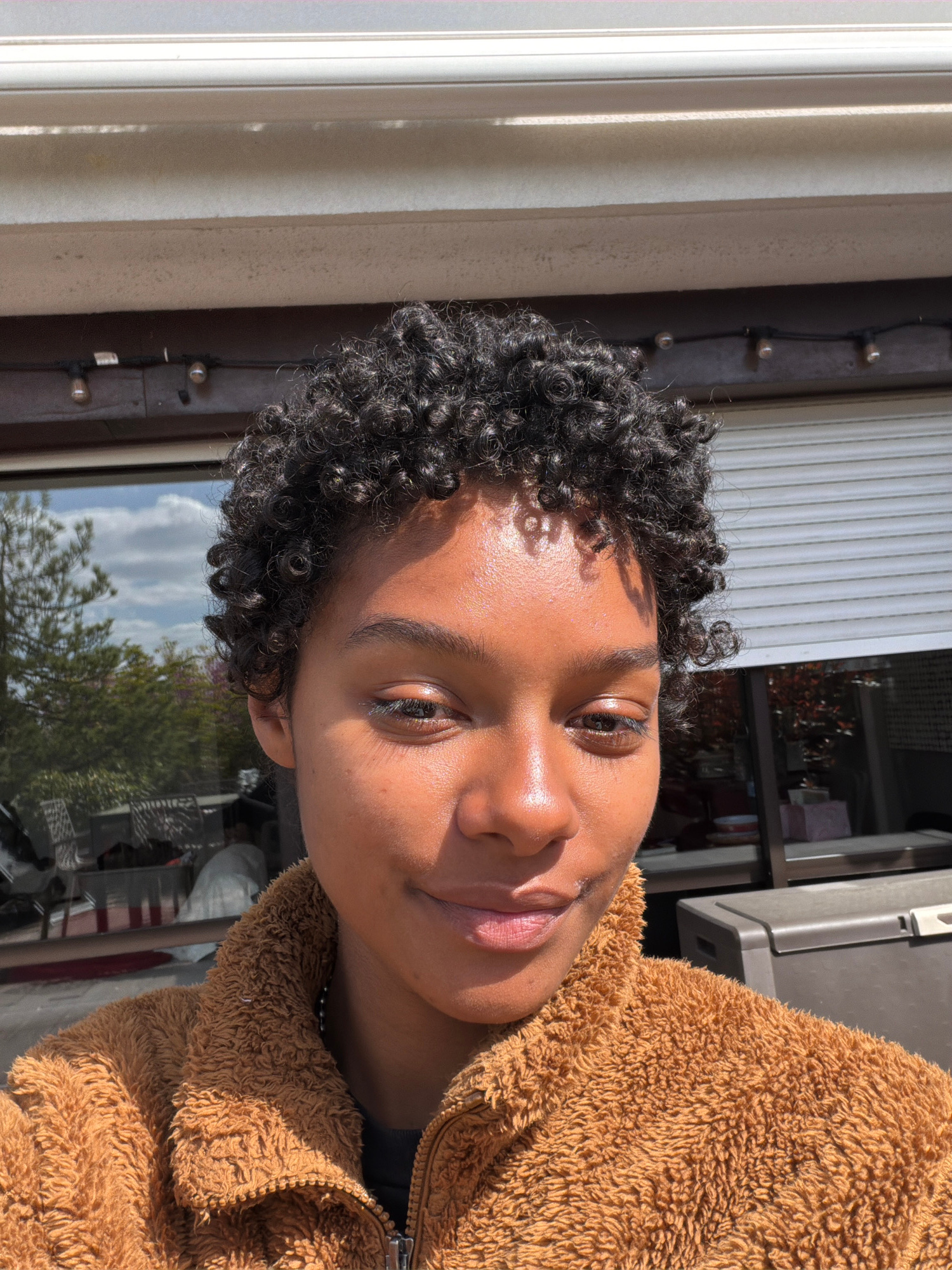 This vertical portrait, taken in Champs-sur-Marne, France, features a young person, likely female, from the chest up, looking directly at the camera with a serene expression and a slight smile. The su…read more