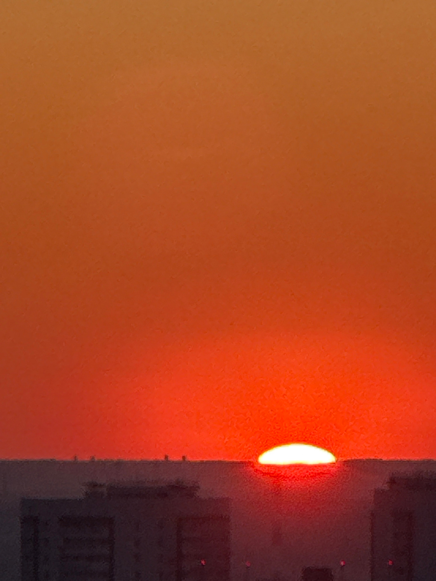 The image shows a dimly lit scene with an orange wall on the left side. On the right, there is a dark object with what appears to be an illuminated crescent shape. The object has a vertical edge adjac…read more