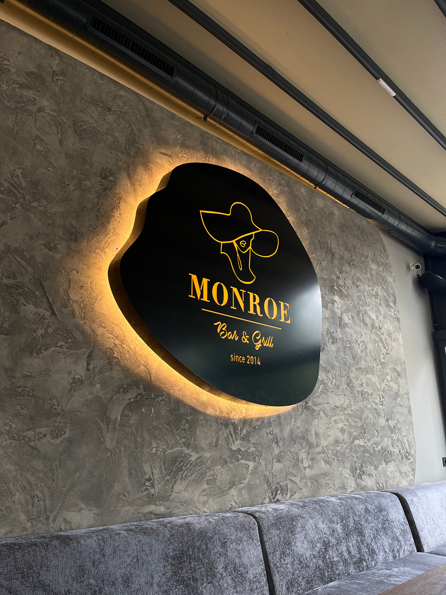 This image captures a close-up view of an interior wall in what appears to be a commercial establishment, likely a bar or restaurant, located in Gotse Delchev, Bulgaria. The central subject is a black…read more