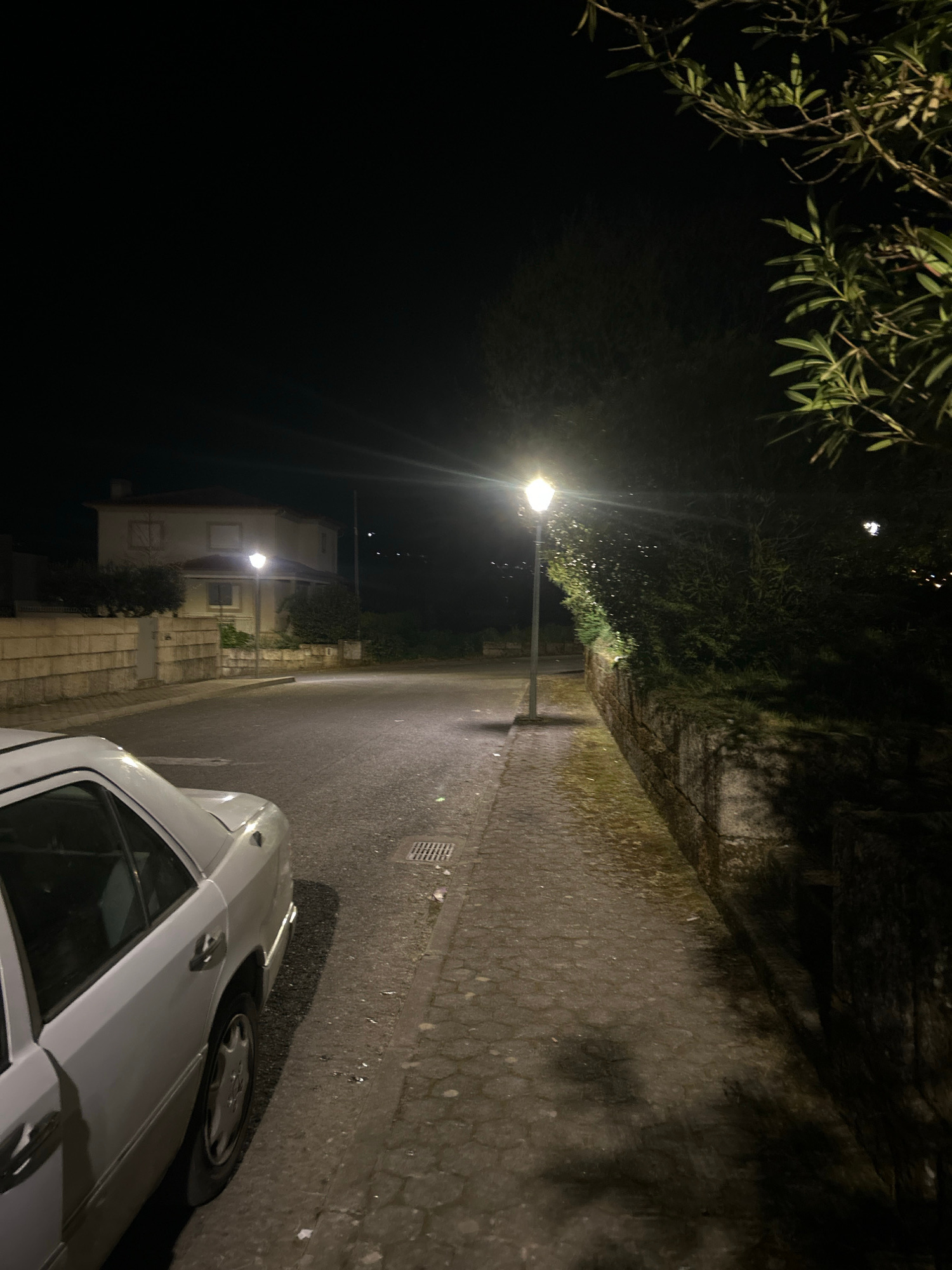 A nighttime view of a street in Vila Real, Portugal. The street is illuminated by a street lamp, with a car partially visible in the foreground. Buildings can be seen in the background, with trees andβ¦read more