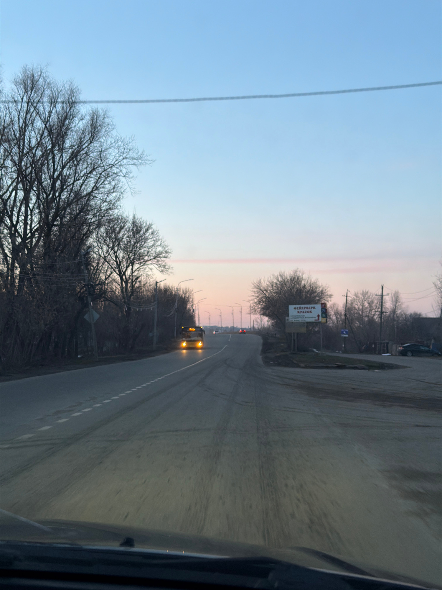 The image shows a view from inside a vehicle driving on a road. A billboard can be seen in the distance with the words "ФЕДЕРАЛЬНЫЙ КРАСОК" displayed, which is a company located in Sarapul, Russia. A…read more