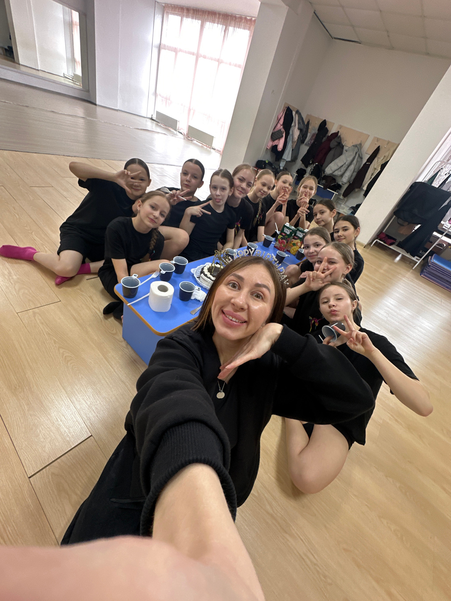 A selfie captures a group of approximately 13 people, mainly young females, indoors in a location identified as Votkinsk, Russia. All are dressed in dark clothing, and some are making peace signs with…read more