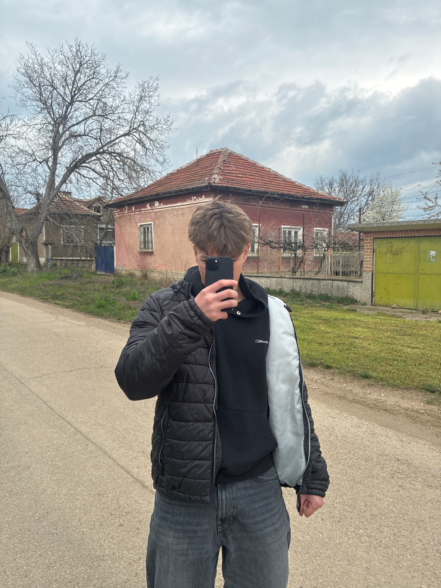 A person is standing on a concrete road in the village of Lehchevo, Bulgaria, holding a black smartphone up to their face. The person is facing away from the camera, their head angled slightly to the…read more