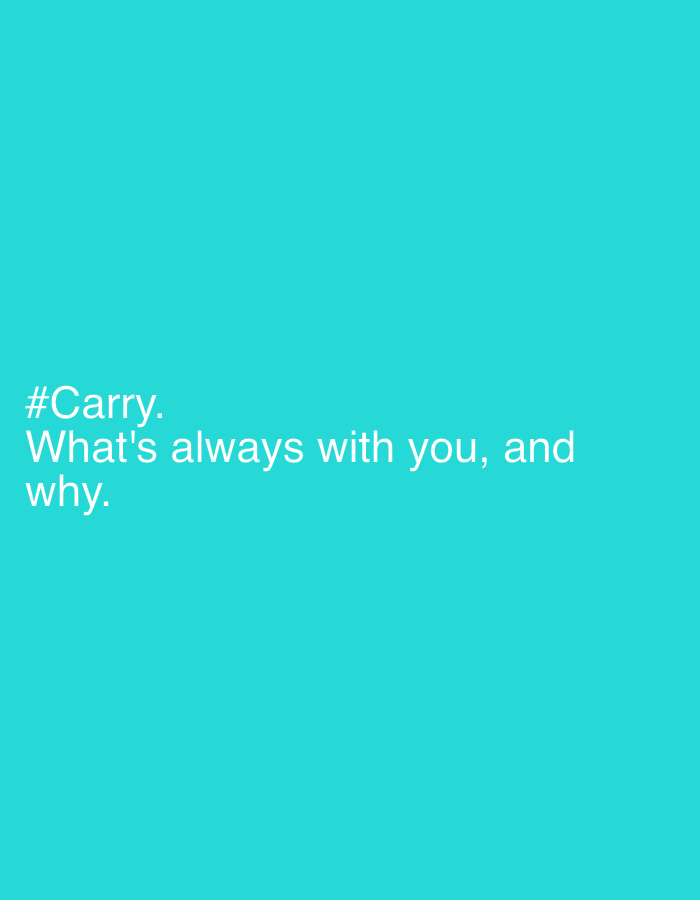 The image is a solid turquoise color with the white text "#Carry. What's always with you, and why." in the bottom left corner. There is no visible scene, location, or people present in the image. The…read more