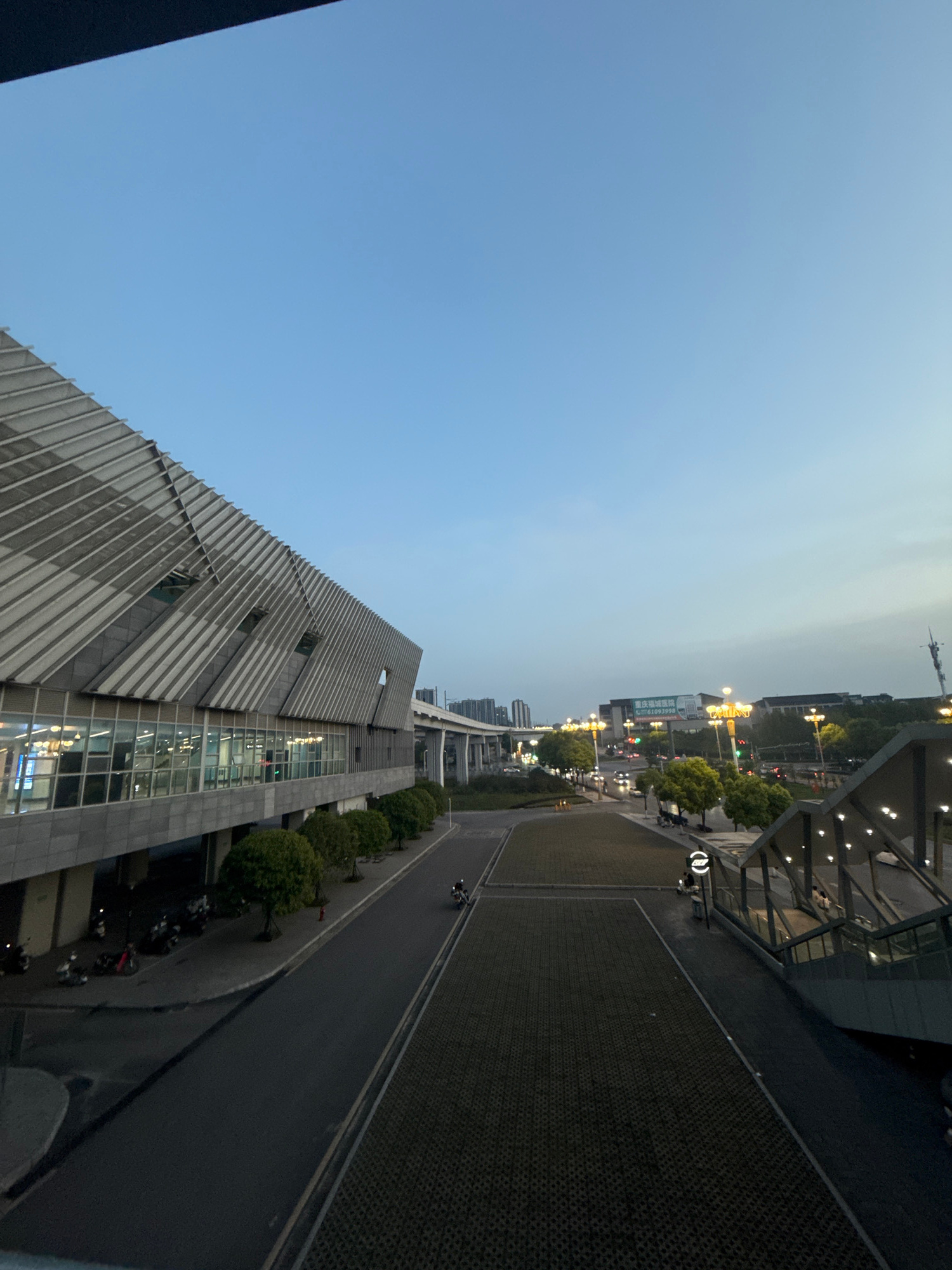 The image shows a cityscape from an elevated perspective in Jiangjin, China. A modern, multi-story building with a distinctive sloped facade and large windows occupies the lower portion of the frame.…read more