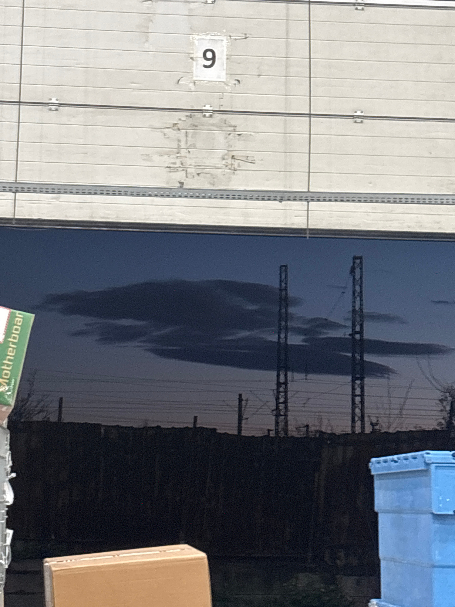 This image captures a static, industrial scene, likely near a railway or utility area, under daylight conditions. The composition is divided vertically. On the left side of the frame, there is a larg…read more