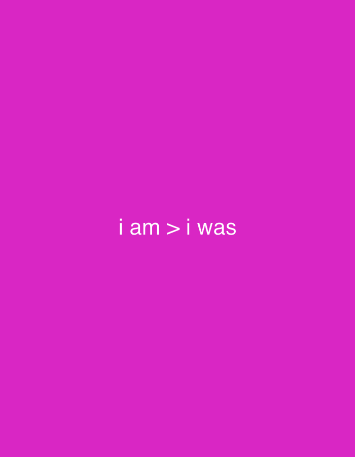 The image is a simple graphic with the text "i am > i was" displayed in white against a solid, vibrant magenta background. There is no indication of location or setting, so no information about London…read more