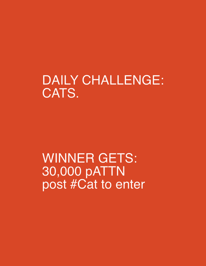 The image is an advertisement with the text "DAILY CHALLENGE: CATS." It continues with "WINNER GETS: 30,000 pATTN post #Cat to enter". The background is orange, and the text is white. There is no indi…read more