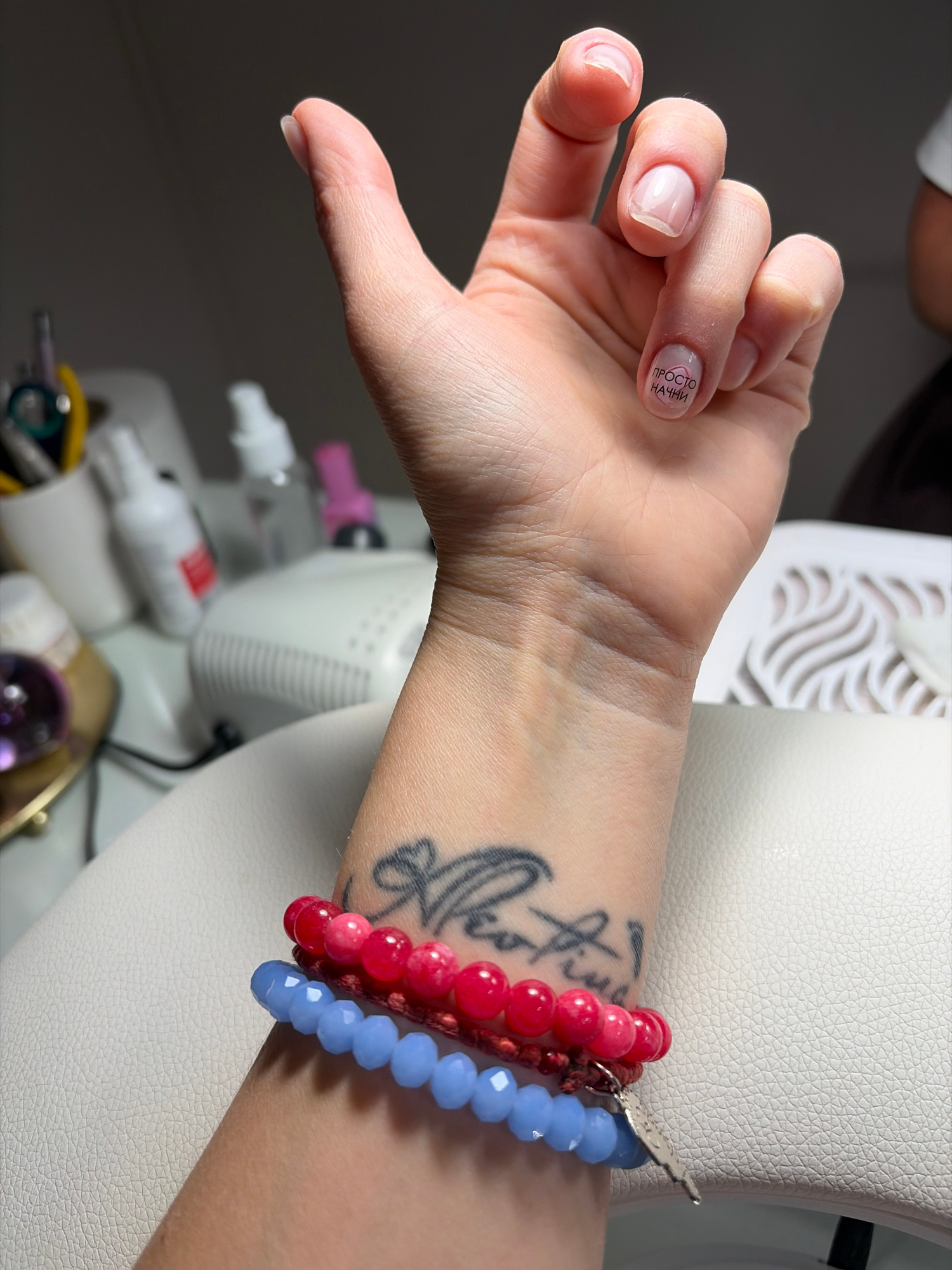 A photograph shows a person's hand and wrist wearing three beaded bracelets (red, light blue, and brown) on a light skin tone. The hand is extended with fingers slightly curled. The fingernails appear…read more