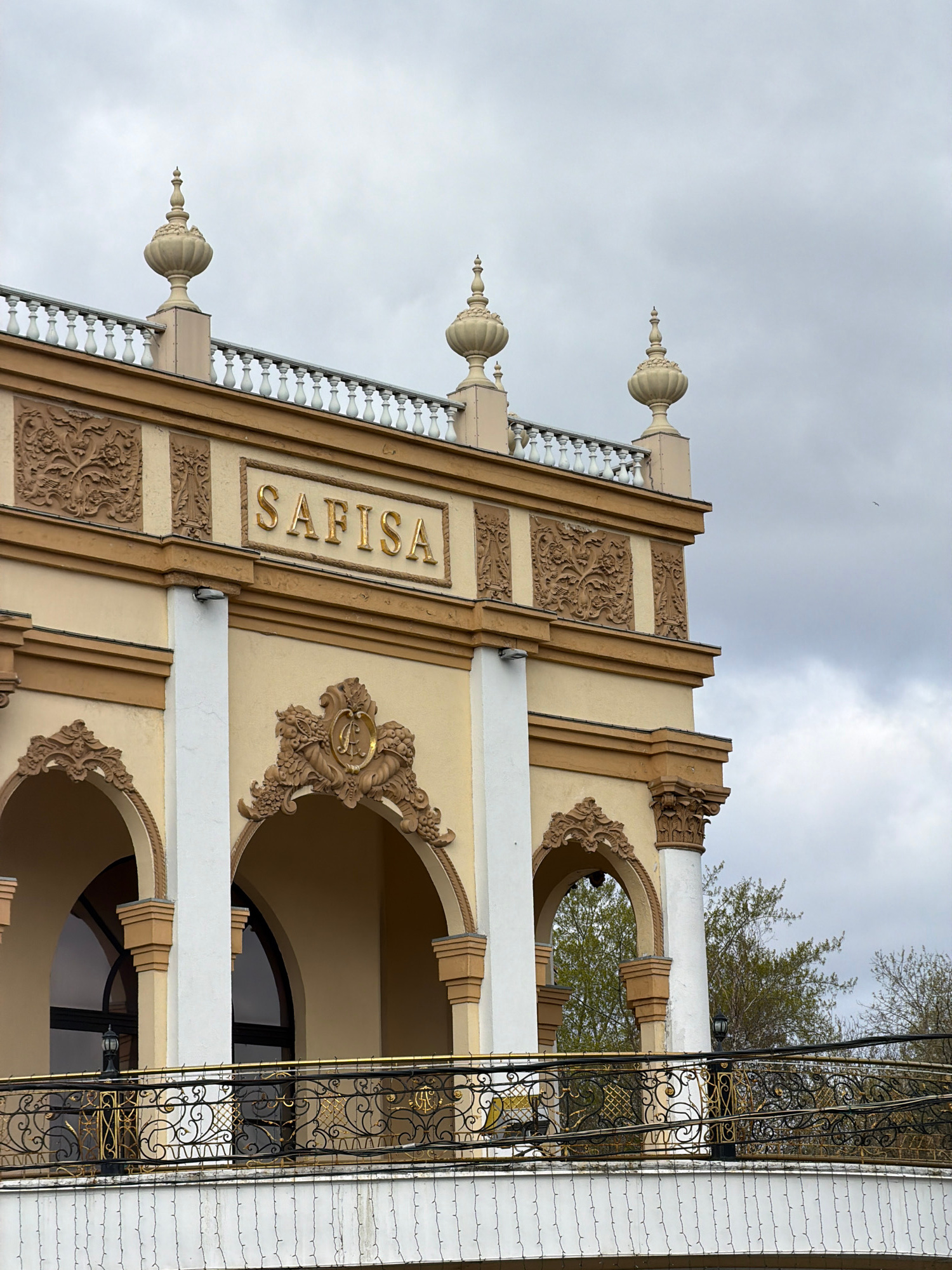The image shows a building facade in Moscow, Russia, with the name "SAFISA" prominently displayed. The building exhibits a blend of architectural styles, possibly reflecting historical influences. Theβ¦read more