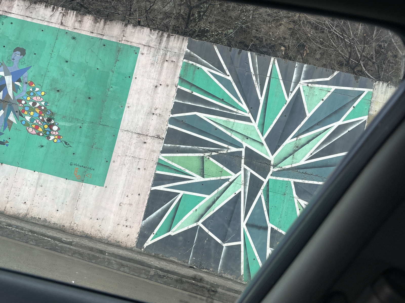 A concrete retaining wall along the right embankment of the Mtkvari River (Kura River) in Tbilisi, Georgia, specifically within or between the Saburtalo and Didube districts, is depicted from an eleva…read more
