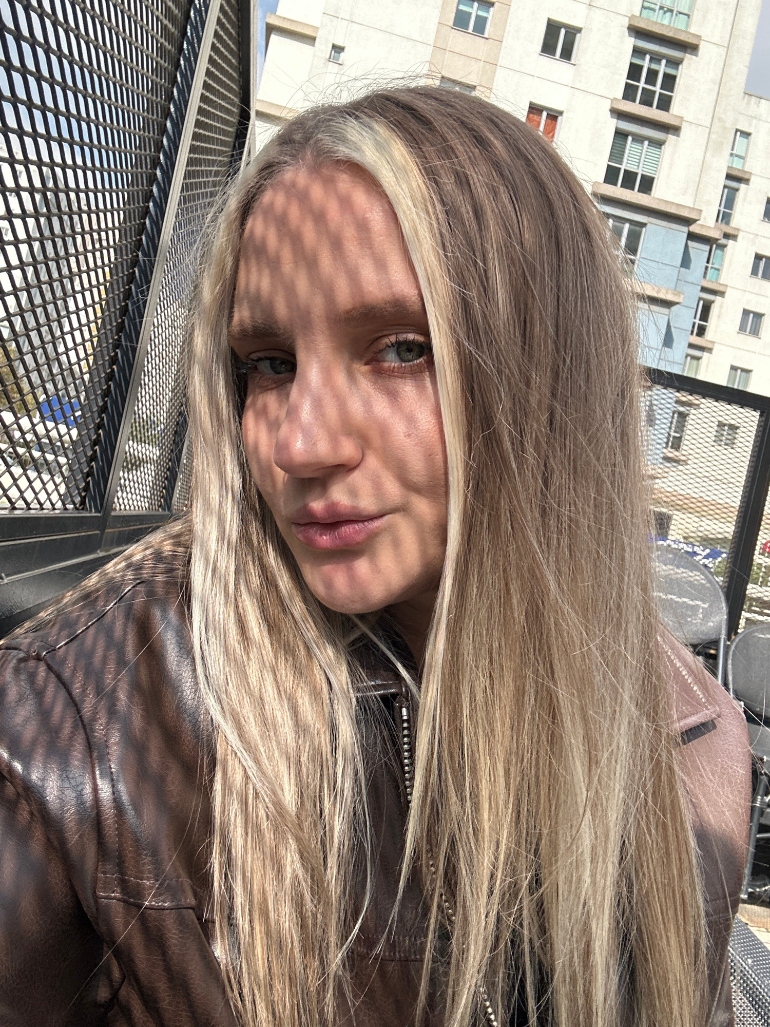 A medium close-up photograph features an individual, likely female, positioned outdoors in Esenyurt, Turkey. The subject's head and upper torso are visible, characterized by long, multi-toned hair comβ¦read more
