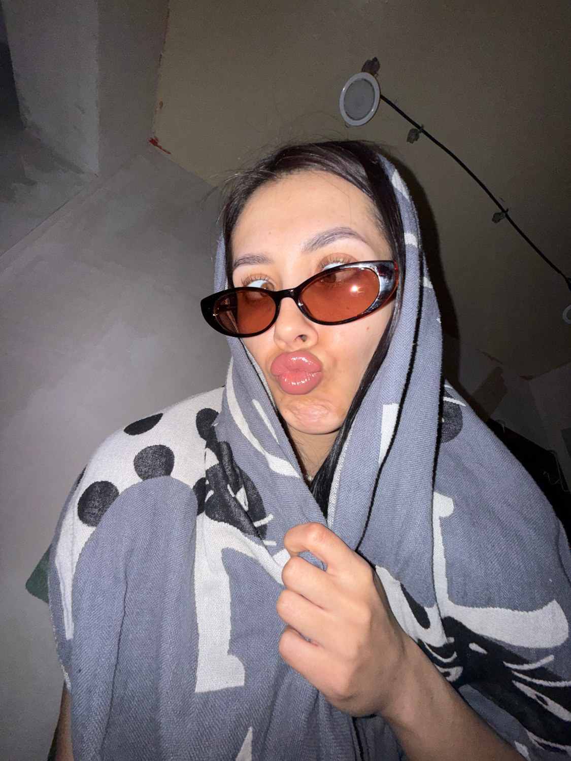 A young person is featured in a close-up, angled indoor shot, taken in Votkinsk, Russia. The subject, likely female, has dark hair and is wearing fashionable sunglasses with brown-tinted lenses and da…read more