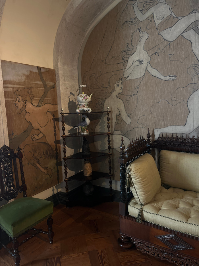 This image captures an interior corner of a room in Sintra (Santa Maria e São Miguel, São Martinho e São Pedro de Penaferrim), Portugal. The scene features a combination of ornate wooden furniture and…read more