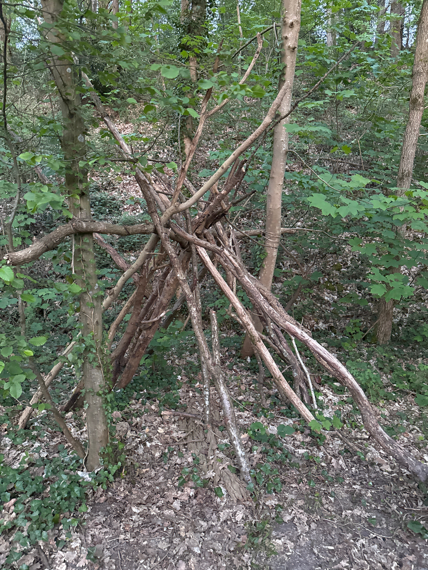 A woodland scene, likely in Bures-sur-Yvette, France, is depicted during what appears to be daytime with diffused light, possibly due to overcast conditions or dense tree cover. The central feature is…read more