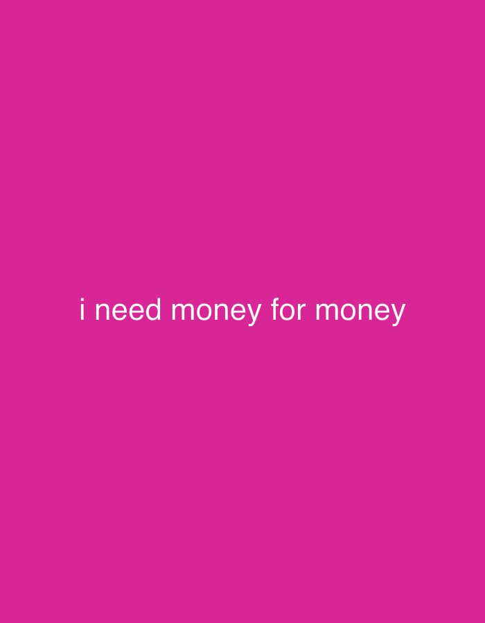 A text graphic on a solid pink background reads "i need money for money." The text is white and centered. The image contains no information about Varna, Bulgaria.