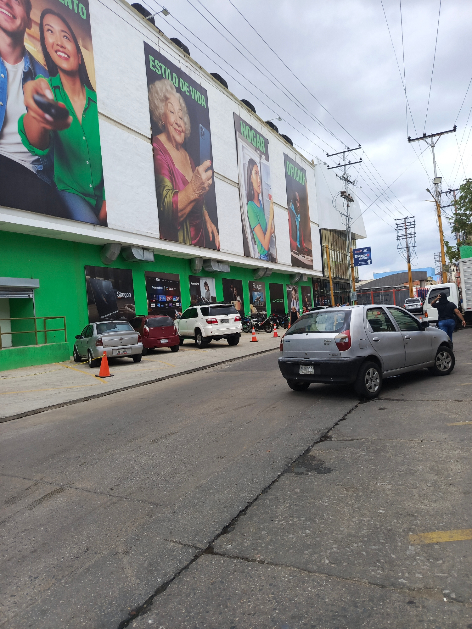 Here's a detailed description of the image: **General Description:** The image depicts a street scene in Valencia, Venezuela, in front of a large retail building. The sky is overcast. **Building:**…read more