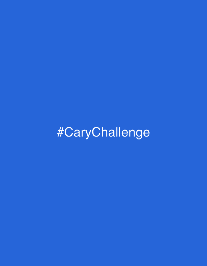 The image is a solid blue background with the white text "#CaryChallenge" centered horizontally and vertically. The location is not specified.