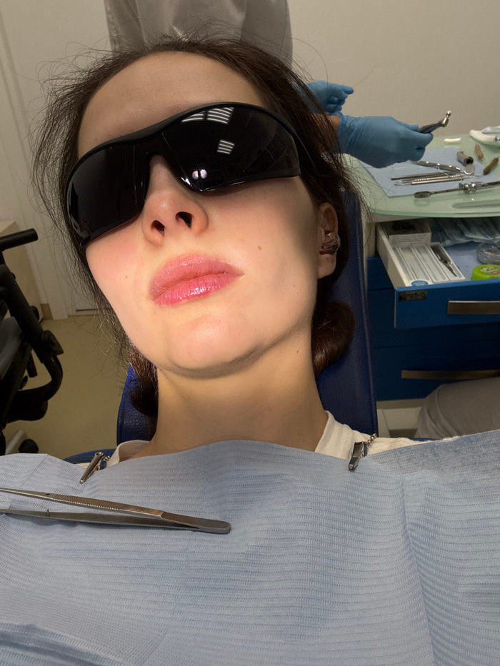 The image depicts a female patient seated in a dental chair within a clinical environment, specifically a dental office or clinic in Yekaterinburg, Russia. The precise address or name of the facility…read more