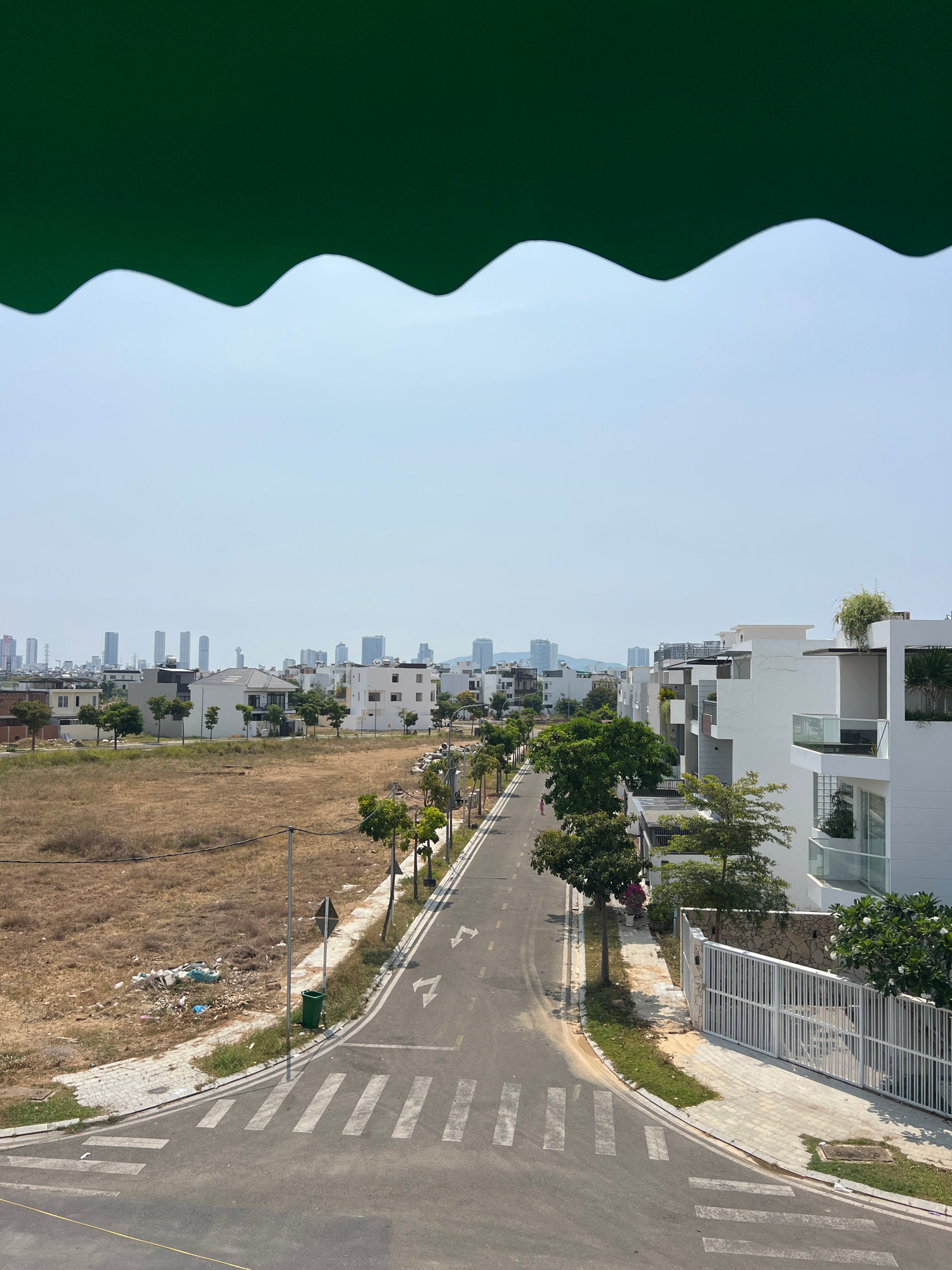 The image, when viewed in its correct orientation, presents a bright daytime urban landscape in Nam Nha Trang, Vietnam. On the left, a large, dark green, wavy shape serves as a foreground element, conβ¦read more