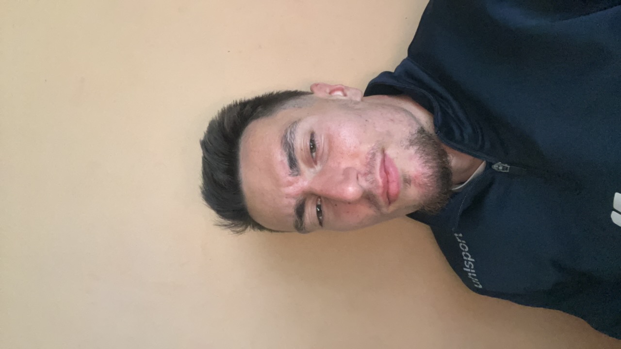A shirtless man with a back tattoo stands in a bathroom with white marble tile walls and black marble countertops. The man is facing away from the camera and holding a phone in his left hand, presumab…read more