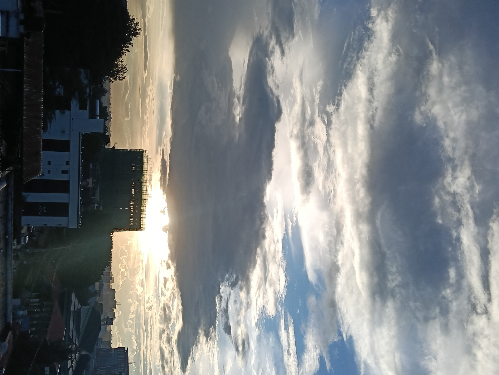 Here is a description of the image: The image shows a view of the sky over a city, identified as Nairobi, Kenya by the text “IVORY” on a building in the middle ground of the image. The sky is filled…read more