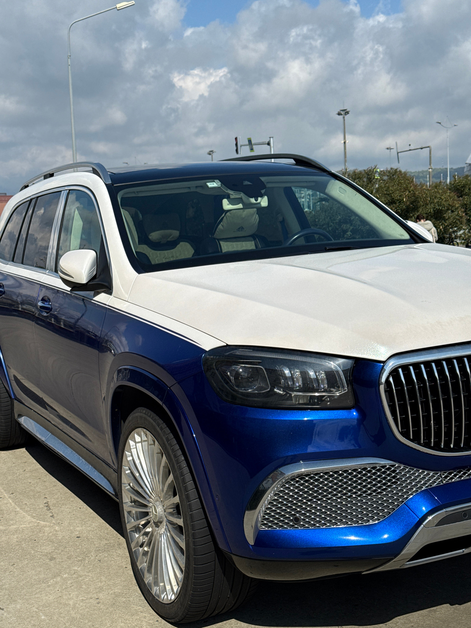 The media file showcases a two-toned luxury SUV parked outdoors under bright daylight. The car's upper body, including the hood, is a pearlescent white, while the lower body and front fascia are a vib…read more