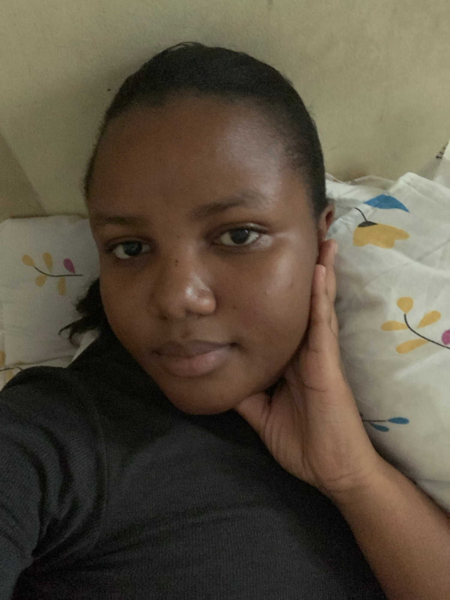 A close-up, horizontally oriented photograph captures a person lying down indoors, likely in a bedroom in Dar es-Salaam, Tanzania. The subject is an individual with dark skin and short, closely croppe…read more