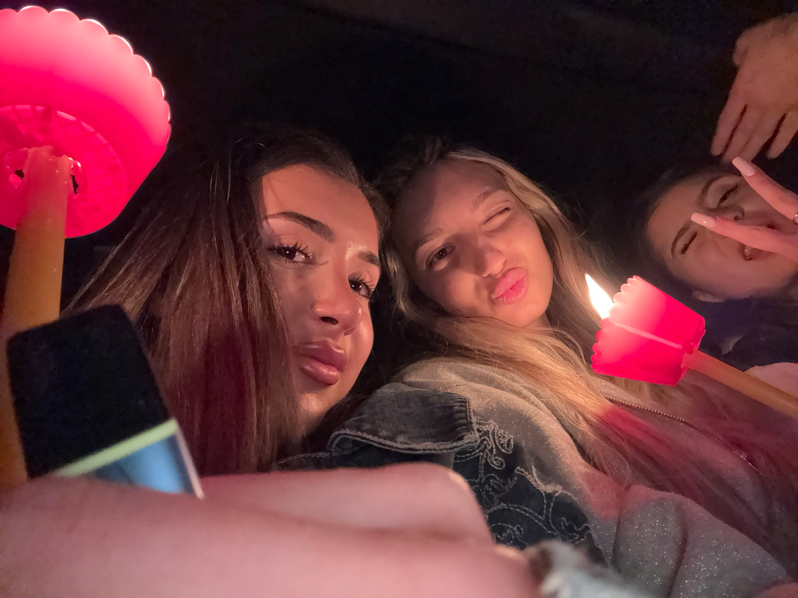 Three women are posed in an indoor setting with dim lighting, possibly a restaurant or lounge. The woman on the left has dark hair and is looking at the camera. The woman in the center has light hair,…read more